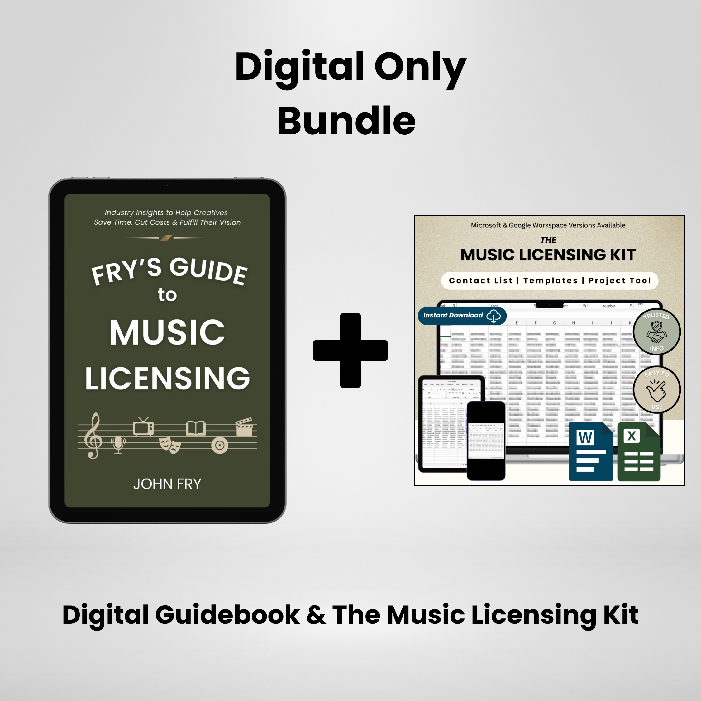 Everything you need, delivered instantly. This digital-exclusive bundle includes the eBook edition of Fry’s Guide to Music Licensing and the full Music Licensing Kit to help you act faster and more confidently when navigating music rights.